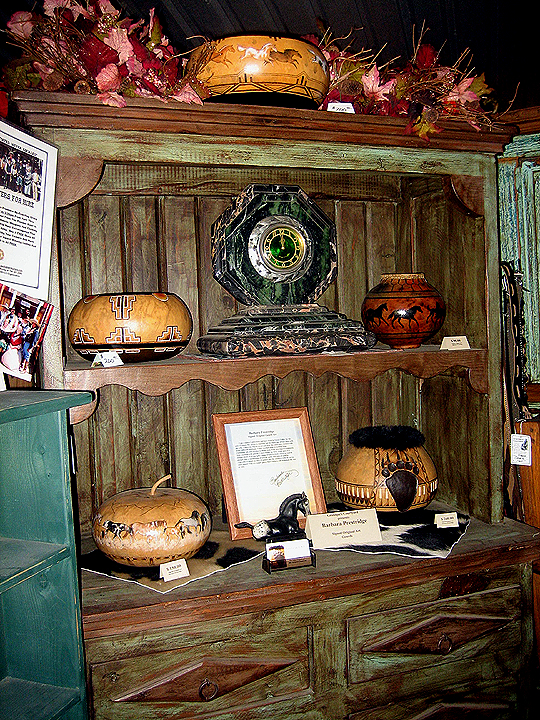 I am a native Californian and have lived in Yucca Valley for the past 12 years. My career is teaching but my heart has always been with the arts. I have my degree in art and over the years have worked with many different mediums. I have worked with everything from traditional oils and acrylics to Batik dyes, from weavings to sculptures. Now, working with gourds, I have found my love. Each piece is a unique blend of pyrography; which is the using of heat to draw, carve, or scorch designs, and a combination of acrylic paint and colored pencils. I am able to blend my love of nature and the outdoors with my art in each signed “One of a kind” piece, which I believe will withstand the test of time!